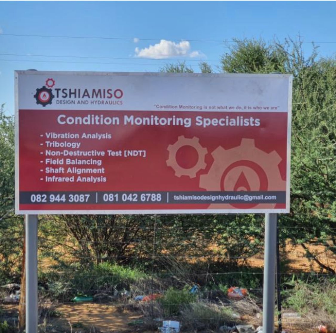 Tshiamiso Design and Hydraulics is a level one BBBEE company owned by Thabisho Olyn, Mr Olyn has been in this industry for more than 15 years in conducting Condition Monitoring on all types of machinery. As a growing company we aim to focus mainly on the local mines in the John Taolo Gaetsewe District Municipality.